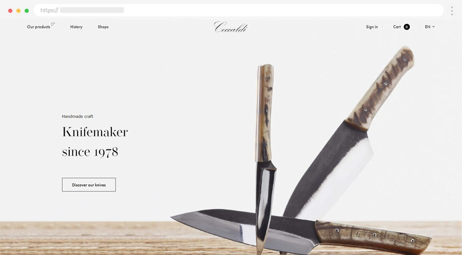 - Una sezione shopping originale che trasmette la stessa arte e unicità dei prodotti.