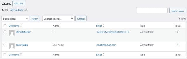 Gli hacker che ottengono l’accesso a un sito spesso creano un proprio account amministratore, nascosto tra gli altri utenti.