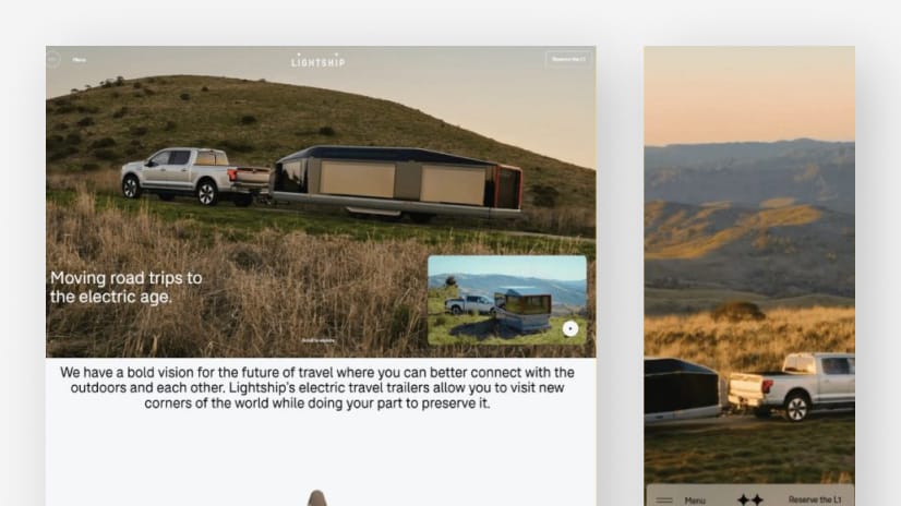 Il sito di Lightship è tutto incentrato sulla promozione di rimorchi da viaggio elettrici, ed è davvero elegante!
