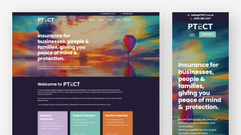 Il sito web di PTECT è una piattaforma pulita e contemporanea che rappresenta una compagnia di assicurazioni con sede nel Regno Unito, focalizzata su tutto ciò che riguarda la protezione. Grazie all'uso di uno schema di colori in modalità scura, il design del sito è semplice e tradizionale, ma con un tocco moderno.