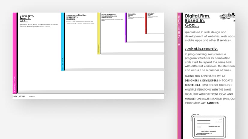 Il sito web di Recurziv è una bomba! Questo studio digitale con sede a Goa è specializzato nella creazione di siti web e app mobile incredibili. La caratteristica più interessante del loro sito è il design che richiama l’interfaccia di un sistema operativo, con sezioni a finestre e un'accordion verticale.